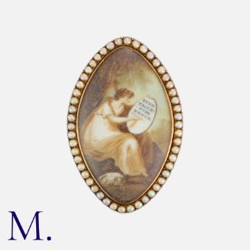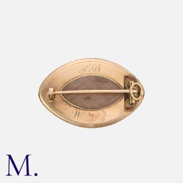 A Georgian Miniature Locket Brooch in yellow gold with hairwork to locket reverse.Size: 4.0cmWeight: 9.5g