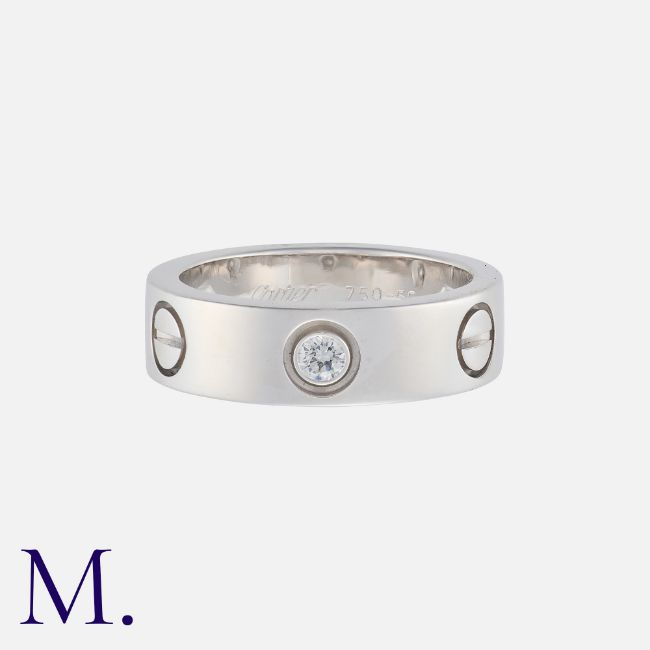 CARTIER. A Classic 3-Diamond Love Ring in 18K white gold set with three diamonds. Signed and serial numbered. With Cartier certificate (matching serial number). Size: K1/2 (Cartier 50) Weight: 8.4g